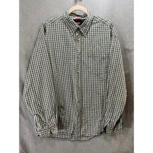 Wrangler Cool River Cotton Button Shirt Adult Large Green Check Long Sleeve Mens