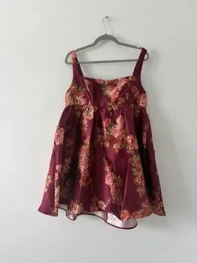 Lulu’s Unbelievably Lovely Red Floral Babydoll Empire Waist Mini Dress NWT XL