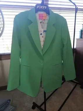 VilaGallo tailored women's blazer in a vibrant green. Features a single-button closure and notch lapel for a polished look. Lightweight construction perfect for professional and casual wear. Stylish green color adds a fresh pop to any outfit.