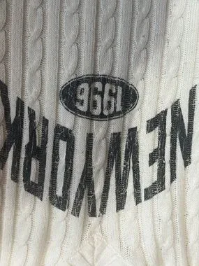 H&M divided looe fit vneck preppy New York white sweater cable knit