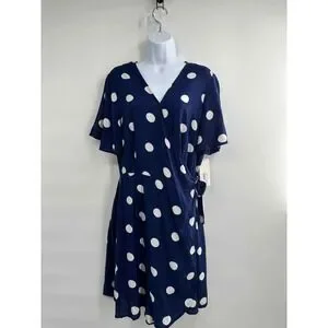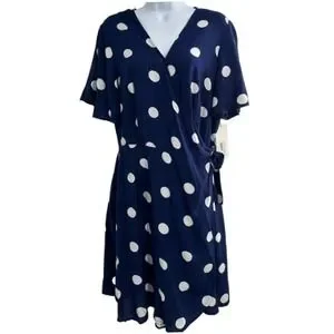 NWT peyton & parker Women's Blue/White Polka Dot Wrap Dress Large