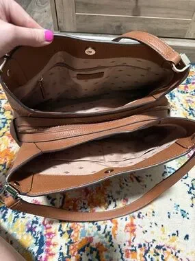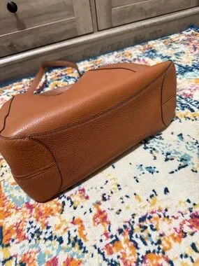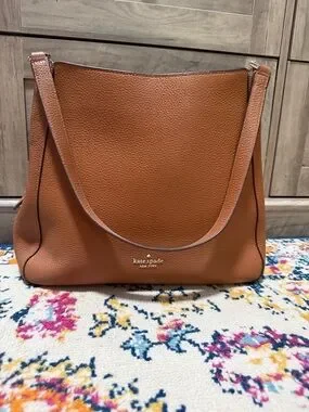 Classic pebble leather shoulder bag by kate spade. Smooth single-strap for easy wear. Subtle logo on front. Clean, structured silhouette for everyday use. Does have a spot where it was picked on the back (photo included).