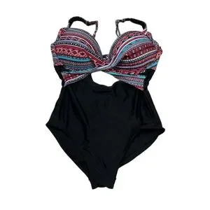 Keywords: Boho, Beachwear, Resortwear, Plus Size, Southwestern, Aztec, Summer, Vacation, Tribal, Cutout Swimsuit, Bohemian, Travel