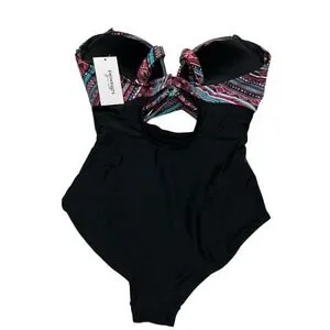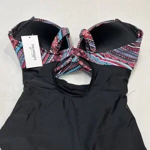 Swimsuits For All Black Aztec Print Cut Out Strappy One Piece Size 14 Vacation