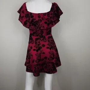 Hello Miss Pink Off Shoulder Velvet Floral Print Dress Size S
