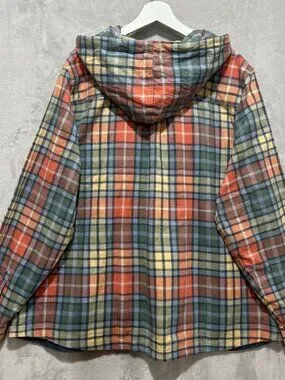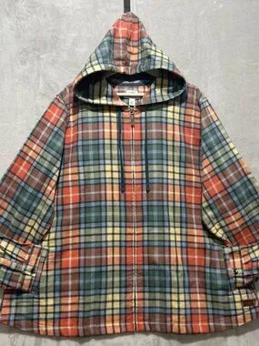 L.L. Bean Scotch Plaid Flannel Women's 3X Relaxed Zip Hoodie Lightweight Logo