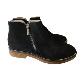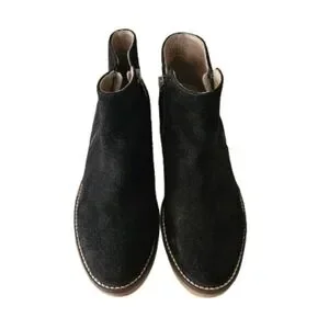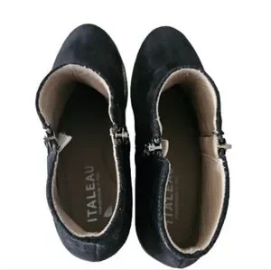 Beautiful Italeau Foliana ankle boots in classic black suede. Handmade in Italy, these boots are known for their comfort, quality craftsmanship, and weather-resistant design.