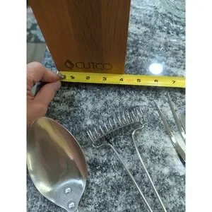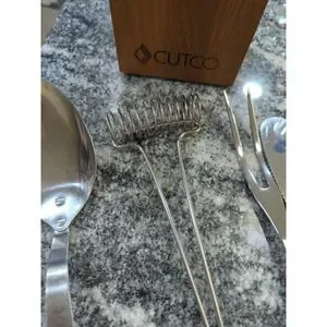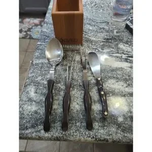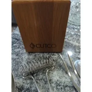 Cutco 4 Piece Kitchen Utensil Set & Wooden Holder Whisk Spoon Spreader Fork