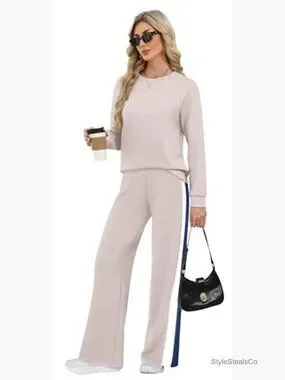 Includes: Long sleeve pullover sweatshirt and wide leg pants