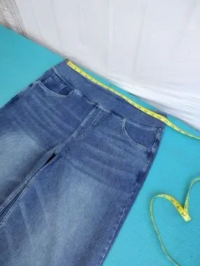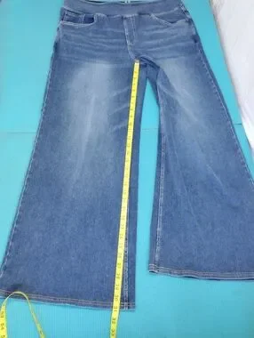 Halara Flex High Waisted Pull On Baggy Wide Leg Jeans Denim Pants - Blue Distressed - Size XL