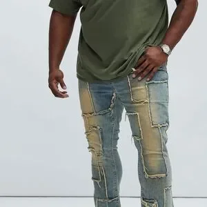 NOVA MENS Light Blue Patchwork Denim Jeans