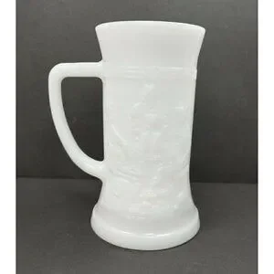 VTG Federal Milk Glass Tavern Scene Stein Drink Cup Tankard Beer Mug Working Man