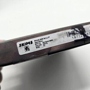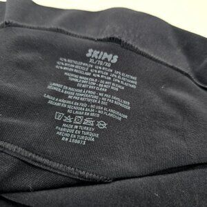 SKIMS seamless bandeau bra in black, size XL. Strapless design with soft stretch fabric for a smooth, comfortable fit.