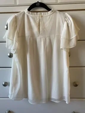 Lightweight cream blouse size XS. Short layered flutter sleeves. Soft drape and subtle texture. Like new condition. From Loft