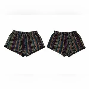 Tribal Knit Shorts M – Boho Festival Aztec Colorful Blue Black Pink Yellow White