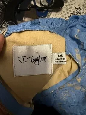 Feminine light blue lace dress with cap sleeves and a flattering A-line skirt. Soft lining under an intricate floral lace overlay for comfortable, breathable wear. Keyhole back detail adds a polished finishing touch. Easy to style for daytime events or special occasions.