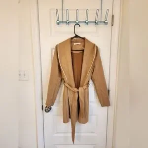 Cactus + Pearl Suede Mustard Brown Midi Coat W/ Belt Size S #R446