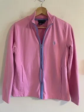Ralph Lauren Logo Vintage Y2K Zip Up Sweatshirt Women Size Small Baby Pink Blue