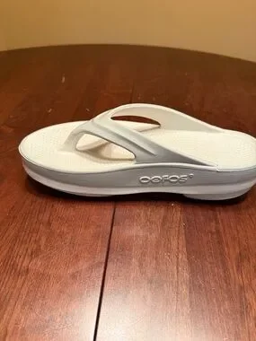 Cushioned thong sandals with supportive foam footbed. Soft, responsive sole absorbs impact. Easy slip-on design for quick wear. Sleek glossy straps for a clean look.