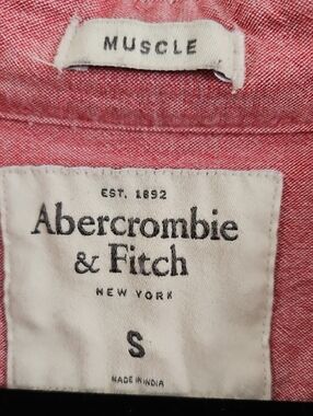 Abercrombie & Fitch Muscle Fit Button Up Shirt Small Red Distressed Look Cotton