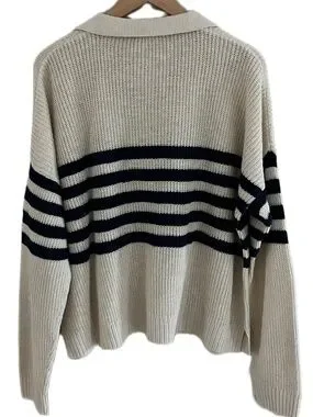 Faherty Women's Miramar Linen Polo Sweater Size L NWT Ocean Stripe