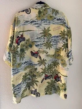 Harley-Davidson x Tori Richard 100% Silk Hawaiian Shirt XL Tropical Motorcycle