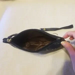 Dark blue textured clutch. Copy of textured clutch in other listing. Papery fabric for the chocolate brown lining.