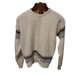 Vintage Robert Bruce Mens Cream Wool Blend Ski Sweater Sz Large Made In The USA