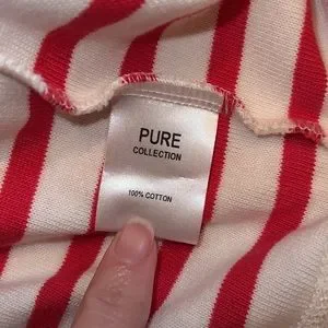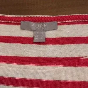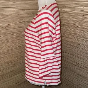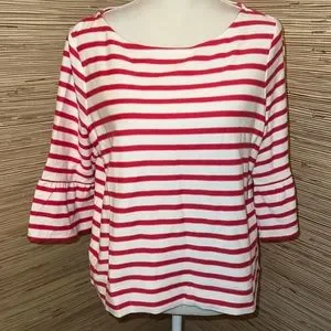 Pure medium cream & coral striped 3/4 bell sleeve French inspired boat neck top