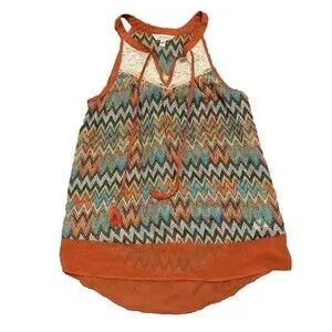 Women's Charming Charlie Boho Southwest Sheer Tank Top/Blouse Size Small Orange