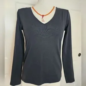 Banana Republic Black V- Neck Long Sleeve Cotton Women's Top Size S