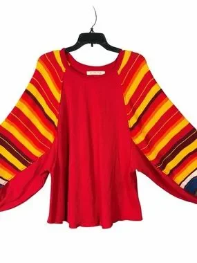 FREE PEOPLE WE THE FREE Top Siz XS Red Rainbow Dreams Pullover Oversized Thermal