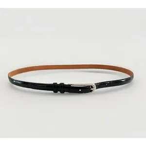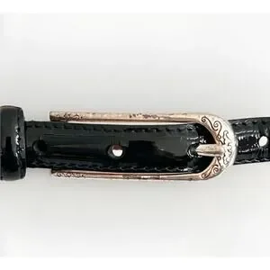 Brighton Patent Leather Belt Black Skinny Silver Tone Buckle Etched Scroll SZ 36