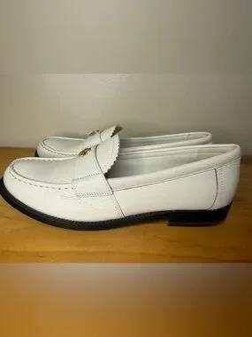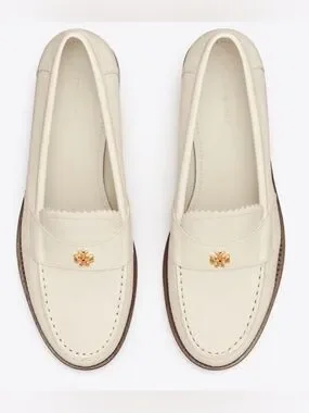 Tory Burch | Classic Slip On Double T Scalloped Leather Loafer in New Ivory 7.5