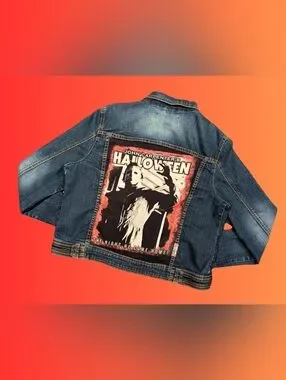 • Handmade, Upcycled John Carpenter's Halloween, The Night He Came Home Denim Jacket Size L