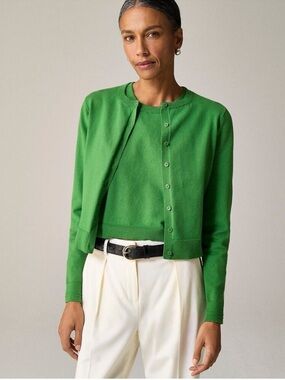 J. Crew Green Jackie Cardigan Button Front Cropped Knit Size M Preppy Coastal
