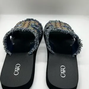 BRAND NEW Cato Beaded Denim Fringe Slide Sandals - Size 7