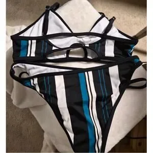 Get ready to make a splash with this amazing bikini bundle! This fabulous set includes two stylish swimsuits, perfect for your next beach getaway or poolside lounging. First up is a chic CUPSHE Teal Striped Bikini. Known for their quality and trendy designs, this set features a beautiful teal and white striped pattern that's both classic and eye-catching. The comfortable fit ensures you'll feel confident and look fantastic all day long. Next, you'll find an adorable Unbranded Blue Ruffle Bikini. This charming set boasts playful ruffle details, adding a touch of feminine flair. The vibrant blue color is sure to brighten up your summer days. Both bikinis are in excellent pre-owned condition, carefully maintained and ready for their new adventure with you. They are both a women's size Small, offering a comfortable and flattering fit. Don't miss out on this fantastic opportunity to expand your swimwear collection with two wonderful options! Perfect for mixing and matching or having a spare for your next sunny escape.