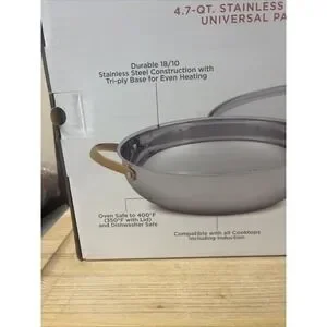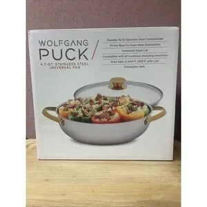 Wolfgang Puck 4.7 Quart Covered Pan Stainless Steel Oven Safe with Glass Lid