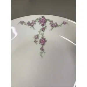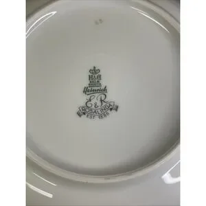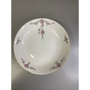 This product is an 8" bowl from the vintage H & G Heinrich Selb Bavaria collection, featuring a delicate pink floral pattern. The porcelain bowl is perfect for a dainty tea party or special occasion, adding a touch of elegance to any table setting. Made in Bavaria, this vintage original piece showcases classic design and craftsmanship, making it a charming addition to any pottery and glass collection.