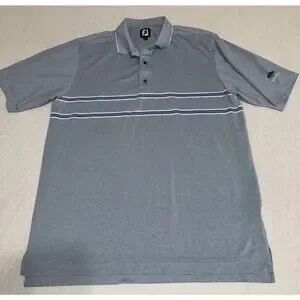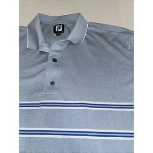 FootJoy Polo Shirt Mens XL Blue Striped Golf Performance Stretch Embroidered ECU