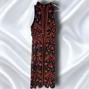 Boho Floral Mock Neck long Dress Medium