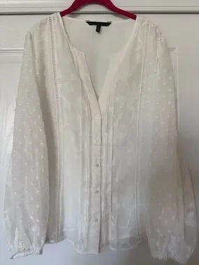 White House Black Market White Embroidered Swiss Dot Button-Front Blouse