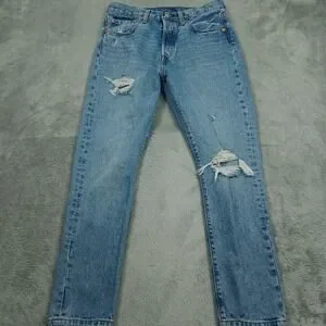 Levis 501 Jeans Womens 29 Blue Denim Premium Button Fly Straight Casual Distress