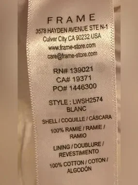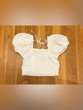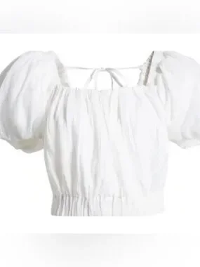 NWOT FRAME Ruched Crop Puff Sleeve Blouse Blanc White Ramie Top. Original MSRP $348.