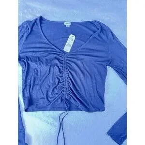 Garage Womens,black ruched front tie cropped long sleeve top Size L