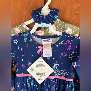 BLUEBERi boulevard - 2 Piece new dress Unicorn Flowers (Size 2T)