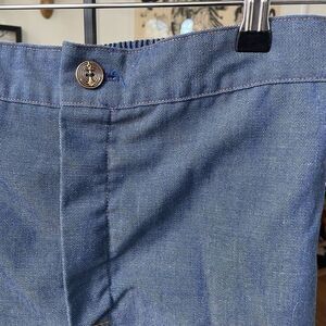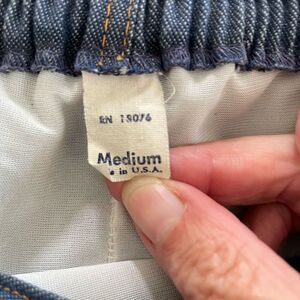 Vintage 70s cropped off-shoulder red gingham top and cut off shorts. The off shoulder crop top is polyester and cotton blend with elastic at the top and bottom to hold it in place. It has dark blue Crossstitch trim. It measures approximately 19 inches armpit to armpit and 10 inches top to bottom. The shorts are fabric that looks like denim with hem. They measure 15 inches straight across the waist with a 13 inch rise and 4 inch inseam. Button and zip closure. The button has an anchor on it. The shorts have nylon lining. Both are tag size medium and surprisingly close to modern expectations.
