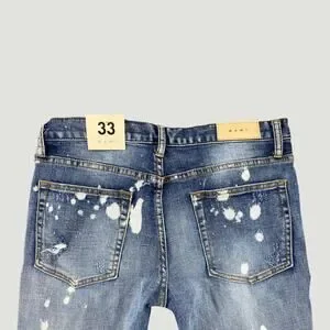 MNML Splash Stretch Denim Jeans Blue Paint Splatter Distressed Ankle Zip 33