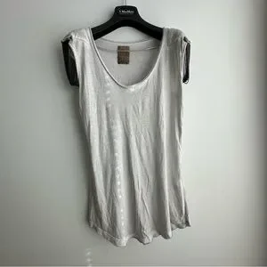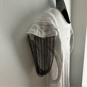 NWOT Vintage Zara Trafaluc Grey V-Neck Short Sleeve Chain Epaulette Tee M